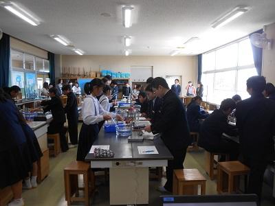 【身体計測】 1年生男子が身長と体重を測定していました。その他、聴力や視覚も行いました。今後、6月にかけて内科検診や歯科検診等行われます。これは「学校保健安全法」で定められ、