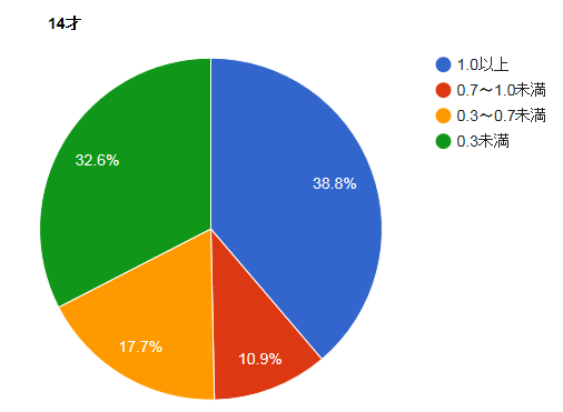 中学2年生の視力の状況(H28全国平均)です。本校でも眼鏡やコンタクトレンズをしている生徒が増えています。