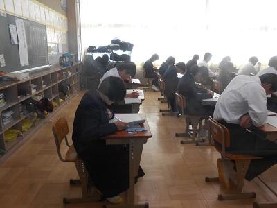 今日は全国で一斉に3年生対象に「全国学力・学習状況調査」が行われています。教科は国語・数学、そして今年度新たに英語が加わり実施しています。生徒は真剣に取り組んでいました。また、2年生対象に「とちぎっ子学習状況調査」教科は国語・社会・数学・理科・英語の5教科です。そして、1年生対象に「知能検査」を実施しました。