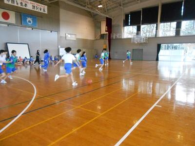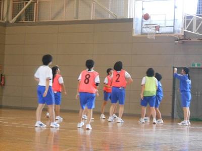 ※3年生女子が体育館で「バスケットボール」の試合中です。とても楽しそうです。