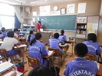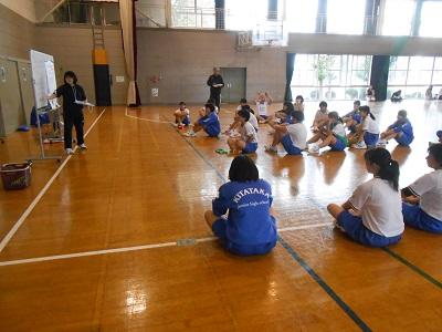 5時間目に教育実習生の「研究授業」が行われました。教育実習期間に自分が計画した授業展開を実際に行い、多くの先生方から意見をいただき、今後の教員を目指す糧にするために行われます。生徒も日頃と違い、多くの先生方が見学に来たので緊張していた様子でしたが、楽しく活動していました。