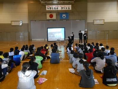 ※体育館では生徒会役員が学校の様子や決まりをわかりやすく説明していました。