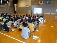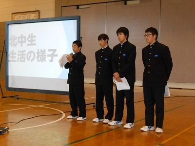 午後から来年度本校に入学予定の児童が来校しました。各教室にて1・2年生の授業を参観した後、体育館で生徒会が中心になり、学校生活や部活動の紹介をしました。半年前まで同じ小学校で活動していた1年生は授業の様子を見られ、「はずかしい」「緊張した」と感想を述べていました。来年度、希望を持って本校に入学してくれることを期待しています。