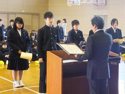 今朝は体育館で全校朝会がありました。文化面を中心とした表彰式と教育実習生のお別れのあいさつがありました。あいさつの中で「中学校時代の友達は今でも連絡を取り合える友達である」そして、中学校は短い3年間だけど「一日一日を大切に過ごしてほしい」とお話がありました。