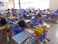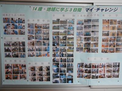 今日は朝から曇り空、ひんやりとした気候でとても過ごしやすい朝を迎えました。校内を巡ってみると2階から東小学校の庭園に樹木が植えられているのが見えました。一昨日の雨の中も作業を行い、あっという間に風景が変わってしまいました。この後も芝生を張り、居心地の良い場所になるのでしょうね。2年生の廊下には「マイチャレンジ」の活動の様子が掲示されていました。みんな一生懸命活動していた様子がうかがえました。また、授業の振り返りが同じく掲示されていました。