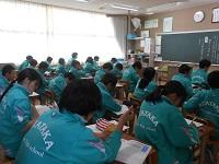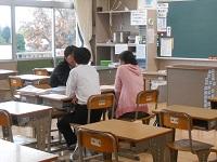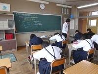 教育実習生の最後の実習日となりました。朝の会で健康観察をしています。教室では、生徒は上着を着ないで生活しています。若さですね。