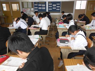 本年度の学校行事もほぼ終了し、現在は学習に集中して取り組むことが目標です。廊下から教室を覗くと先生の説明に真剣に聞いている生徒、資料から回答を導き出している生徒、実験で指示どおりに活動している生徒等、真剣に学習に取り組んでいました。
