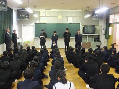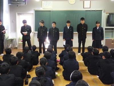 結果は、最優秀賞「3年2組」、優秀賞「3年3組」「2年2組」でしたが、どのクラスも素晴らしい発表で感動しました。生徒に感謝です。