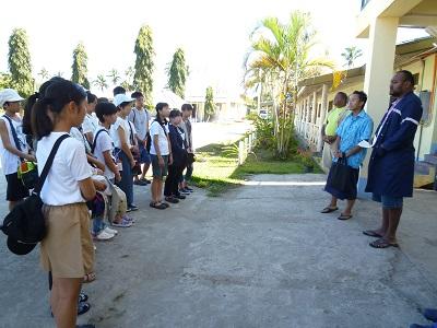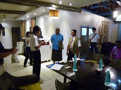 初めにファイヤズ・アリ氏から歓迎のお言葉をいただきました。原稿用紙3枚にもわたる内容の濃いスピーチをいただきました。その後、団長から今回の歓迎の感謝と今後も高根沢町とフィジー共和国の親交の継続をお願いしました。生徒を代表して日本のお箸・風鈴・扇子を贈呈させていただきました。短い時間でしたが、この派遣事業が永遠に継続され、笑顔に満ち溢れたフィジーの文化を高根沢に浸透していければと思いました。