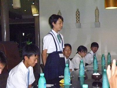 夕食時には全員に今回の派遣事業での感想を発表してもらいました。全員が今回の研修を通して、自分の成長を確認していたようです。