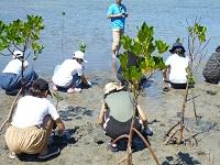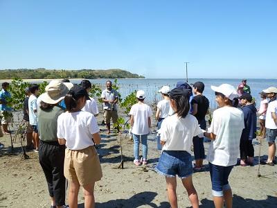 8:00にホテルを出発し、OISCA研修農場を視察しました。農業と建築を勉強したい人が研修(1年間)を行い、技術を身に付ける場です。ほとんどが中学か高校を卒業した人が参加しています。日本の専門学校のようです。その取り組みの一つとして、マングローブ(樹木)の植林体験を行いました。村の生活を守る大切な事業です。この植林によって、大波から村を守り、魚が獲れるようにするそうです。村の子どもたちと一緒に活動を行い、最後には一緒に遊び、楽しい一時を過ごしました。最後には、フィジーの「別れの歌」をみんなで歌ってもらいました。村の子どもたちとの別れがちょっと寂しかったです。