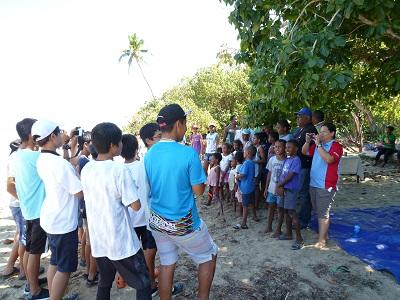 第4日目、今日は「マナ島」へ行き、環境プログラムを行いました。