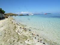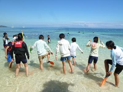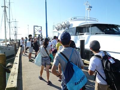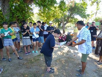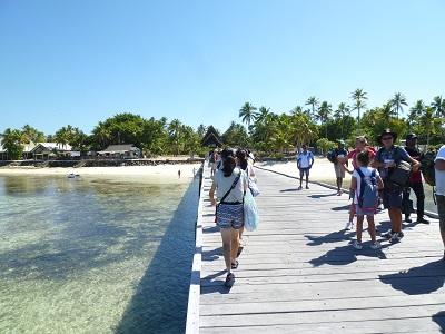 一行は、8:00(日本時間 午前5時)にマリーナから高速艇で1時間30分、「マナ島」に到着しました。桟橋を歩く生徒は「海が透きとおってる」と誰もが話していました。