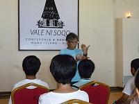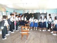 朝食を終えた一行は9:20分に「ナワカ村」に到着しました。まず案内されたのが村の学校です。1903年に設立され、現在500名の子どもが学習しています。1年生から8年生が学んでいます。訪問した時に先生方の研修会が行われていました。校長先生にお会いして、お話を伺ったところ、職員は25名とのこと。学習内容も日本と違っていました。家庭科はなく、体育と音楽は一緒で、雨が降ると音楽で晴れると体育だそうです。それも男子はラグビー、女子はバスケットのようなスポーツを行うそうです。