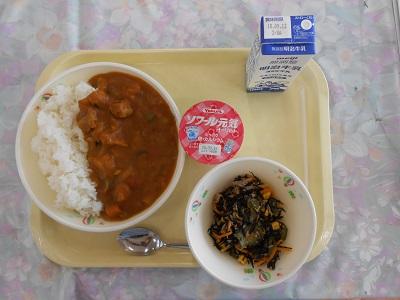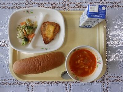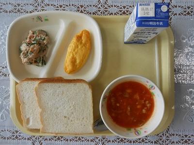 【給食メニュー】 パンは高根沢町産のブルベリーパンです