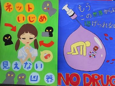 夏休みの宿題で、ポスター作成がありました。交通安全や環境問題等です。