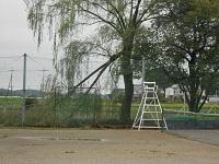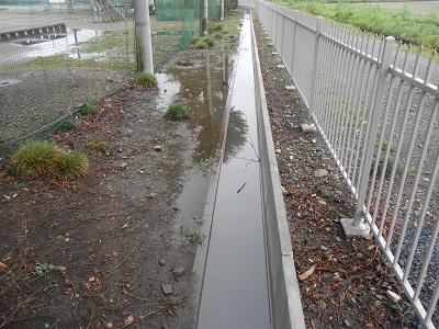さて、本校でもテニスコート南側の柳の木が倒木していました。また、側溝にも水が溢れ、校庭に水が溜まっていました。生徒の安全のため、早めに対処したいと思います。