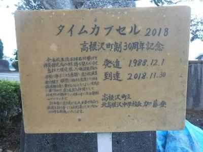 明日は2年生の「親子奉仕活動」です。7:00からよろしくお願いします。なお、終了後に「タイムカプセル」の掘り起こし及び開封を行う予定です。この事業は高根沢町制30周年(1988年)を記念し、当時の中学生が自分に宛てた手紙等をカプセルに入れ、30年後(2018年)に開封し、再会することを祝う取組です。町内全ての小・中学校で実施しています。