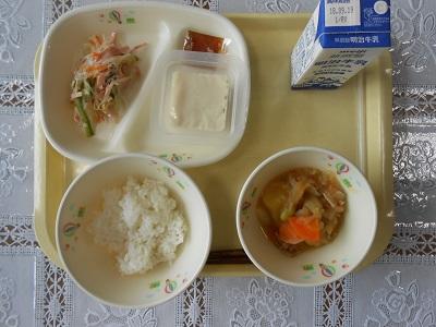【給食メニュー】 肉じゃががとても温かく、じゃが芋も柔らかく煮込んでます。