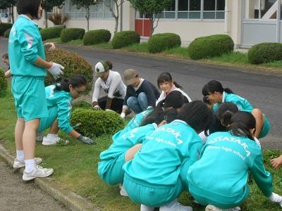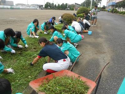 朝7時から約1時間、2年生対象とした「親子奉仕活動」が行われました。天気が心配されましたが、生徒も保護者も熱心に「学校をきれいにしよう」と一生懸命活動してくれました。ありがとうございました。これからもきれいな環境を維持していきたいと思います。