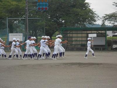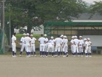 前の試合が長引き、予定より1時間30分以上遅れてのプレイボール。この暑さの中、集中力と体力の勝負となりました。後攻の本校は、守備でミス(エラー)が目立ち、先制点を取られる苦しい展開になりました。攻撃では、チャンスにヒットが出ずに得点を取ることが出来ませんでした。