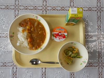 【給食メニュー】 夏休み前の最後の給食は、生徒の好物「カレー」でした。