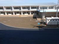 東小学校の建設は完成しています。校庭にはジャングルジムや鉄棒・滑り台も設置されたようです。本校側も舗装が終了しました。