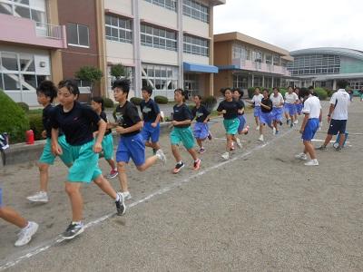 夏休みになり1週間が経ちました。大会の結果により、新たな目標を掲げ取り組んでいることと思います。学校では、県大会に向けてソフトボール部と野球部が調整しています。野球部は開会式に向けて、行進の練習をしています。駅伝部はサッカー部、バスケットボール部が中心となって練習していますが、今日からバレー部も参加し持久力強化のために取り組んでいます。