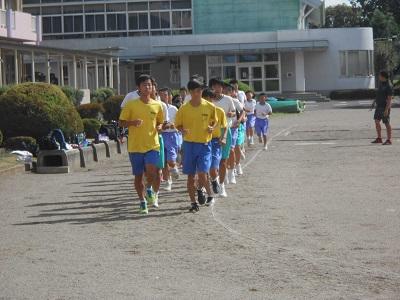 この雨でも駅伝部は体育館で練習メニューを果たしていました。長距離の練習は3日スパンで練習することが大切といわれています。練習・練習・休息を何日も繰り返さないと力が向上しないとのこと。せっかく長い距離を走れるようになった体力を維持し、今後、スピードを付けていくことが大切です。10月19日の大会まで73日。