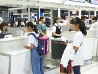 成田空港を予定通り出発した一行は、約8時間30分を機内で過ごし、本日(20日(月))9:10分(日本時間6:10)にフィジー(ナンデイ空港)に到着しました。機内では、夕食と朝食が出されるとともに、機内の音楽やビデオ映像もすべて英語で時間が長く感じました。