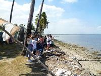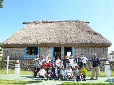 全員元気な様子でバスに乗り、「ウ”イセイセイ村」を訪問しました。入り口では村人が作った装飾品が売られ、お土産を購入した生徒も多かったようです。村長さんの家の前で記念写真を撮りました。子ども達も多く、今は冬休みだそうです。村の人がヤシの実を木に登り、その場でジュースを御馳走してくれました。