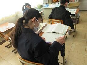テスト対策で、文法、歴史的仮名づかい、漢字の音訓などの復習をやっていました。みんな真剣に取り組んでいました。