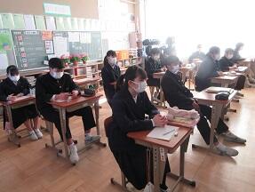 今日の給食前に、特色選抜に行った3年生女子と会うと「お陰様で、いっぱいしゃべれました。」とお礼を言われました。当然の面接指導をしただけですが、こんな一声をかかけられると、ちょっと嬉しくなります。