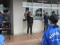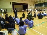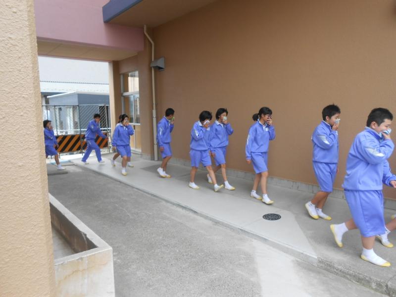 避難訓練は天候の関係で、避難場所を体育館に変更し行いました。学習場所からの移動はハンカチを口に押さえ、素早く避難していました。講評では、「自分の命は自分で守ること」自分の周囲には「まさか」という予測できないことがたくさんある。日頃から安全に関して、常に気を配りながら生活してほしいとお話ししました。