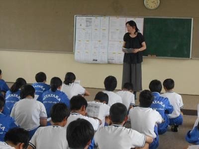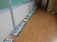 また、講話を聞くために廊下に整然と上履きが並べてありました。とても気持ちがよいですね。