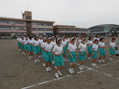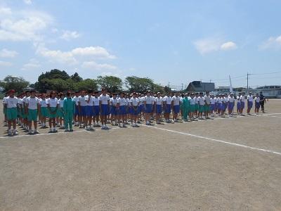 3・4校時は体育祭の練習を行いました。開会式から男女種目等、確認しながら練習しました。暑い中での練習でしたが、気合いが入り、具合の悪くなる生徒もいませんでした。たくましさを感じました。