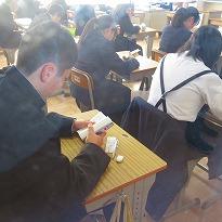 午前中、3年2組生徒の「卒業証書」浄書(卒業番号と生年月日、氏名)を行いました。