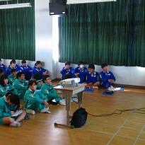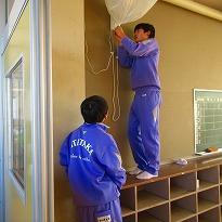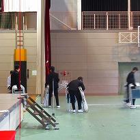 ●生徒会役員が中心に、1年、2年のバスケットボール部、バレーボール部、サッカー部、ソフトテニス部などが、会場作りに協力してくれました。