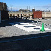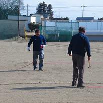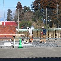 (校庭に駐車場のライン張り 教頭と久郷先生2人で)