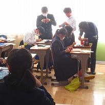 ●今日、県立の受検をしない3年、31名(3名欠席)は朝から、教室や校舎内の清掃活動や「卒業式」のしおりや掲示物作りなどの仕事をしていました。