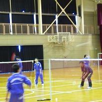 (3年2組保体科 翔兵先生もバドミントに参戦)