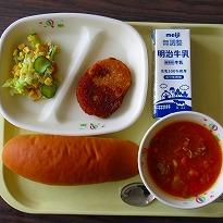 (今日の給食 豆腐ハンバーグ他) (お昼の空模様)