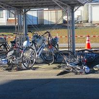 (強風で倒された自転車)