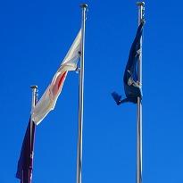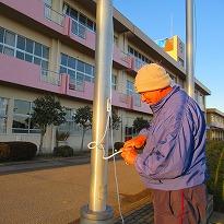(国旗掲揚用のロープ張り替え工事 切れる寸前でした!)