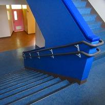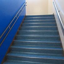 〇大規模改修工事も再開・・・・・・お昼前に北中へ行くと、5名ぐらいの職員が校内に入って工事をしていました。西側の階段と踊り場のシート塗布が完成しています。生徒が来週、登校したとき「綺麗になったな!」と思います。