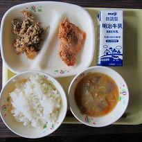 (今日の給食 鶏肉の香草焼き他) (午前中の空模様)