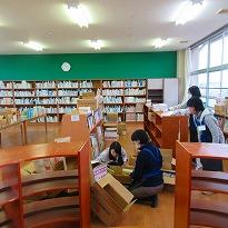 (復帰を目指す図書室 町図書館職員の応援をいただいています)
