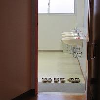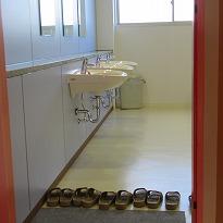 (3年トイレ 昼休み後のトイレ、スリッパが揃っています)