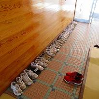 (保体科 整然と並んでいる外履き 武道館玄関)