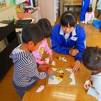●今回は事前の授業の中「手作りおもちゃ」を作成していて、それを持参して園児たちと遊ぶ学習をしていました。